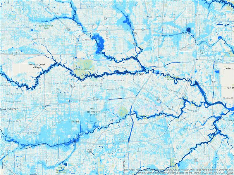 100-year ponding depths within the City of Houston as a result of the modeling effort.